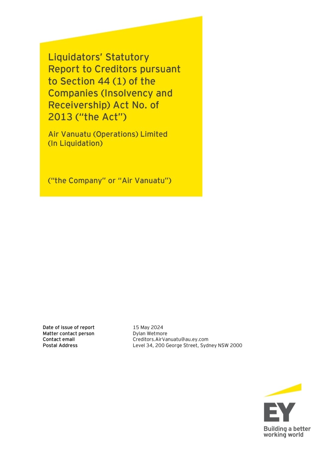 The creditors of Air Vanuatu attended a virtual meeting where Ernst and Young provided a comprehensive overview of the airline’s financial status. The report highlighted the prolonged insolvency of the company, which has been sustained primarily through government guarantees and loans.